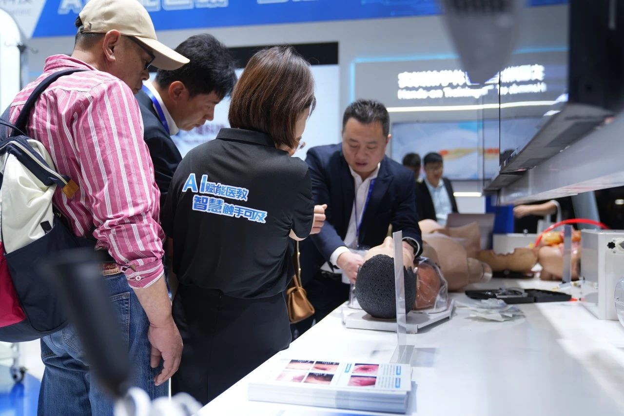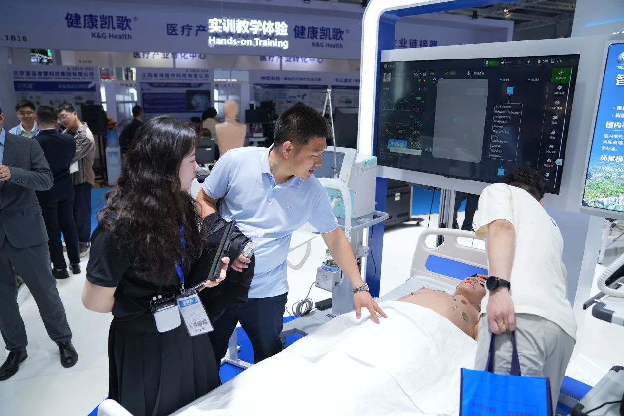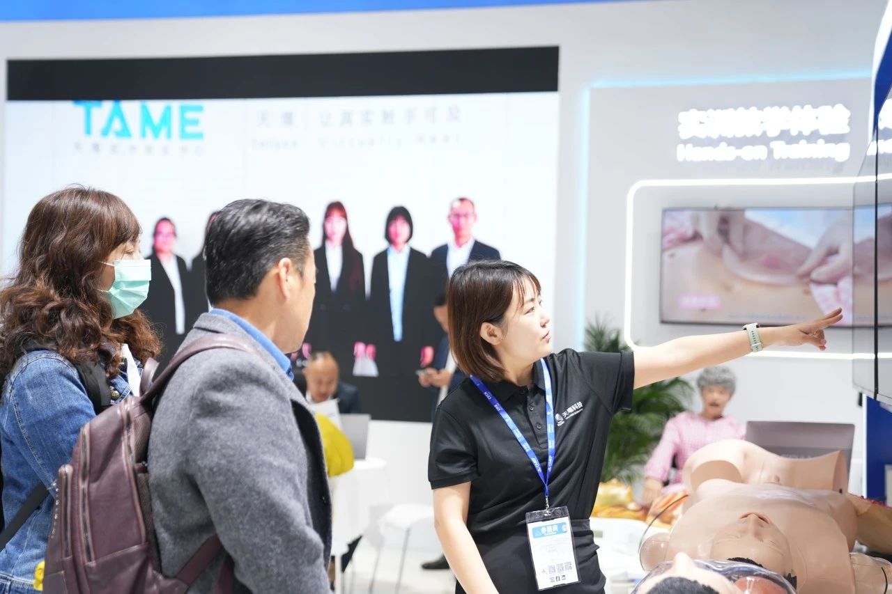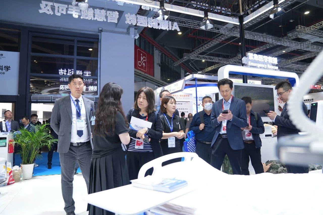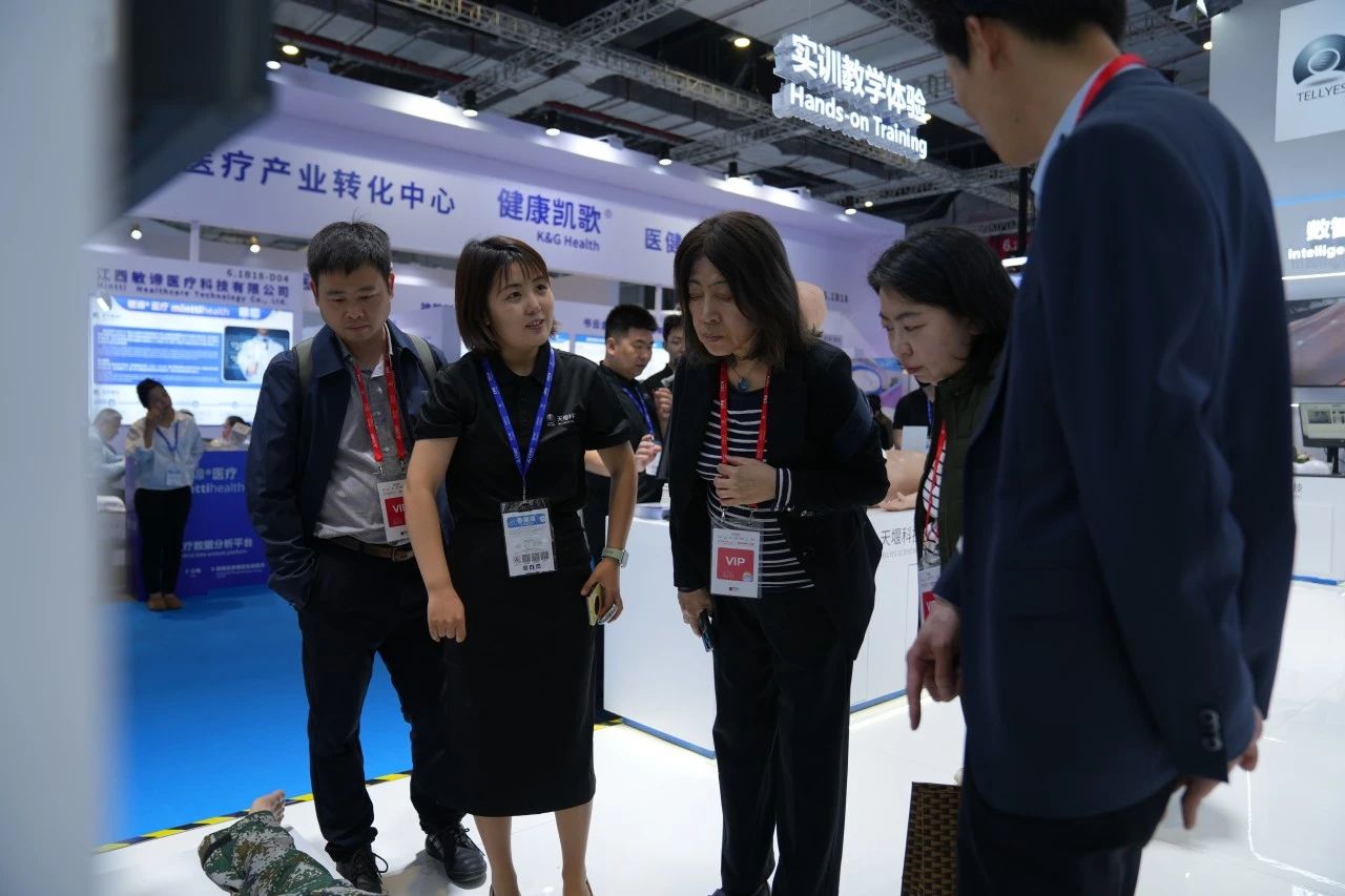 Focused on the Tellyes exhibition area, foreign guests showed great interest in the deep application of AI-based medical education platform and high-fidelity training system. After thoroughly understanding, they all gave consistent praise to the products.