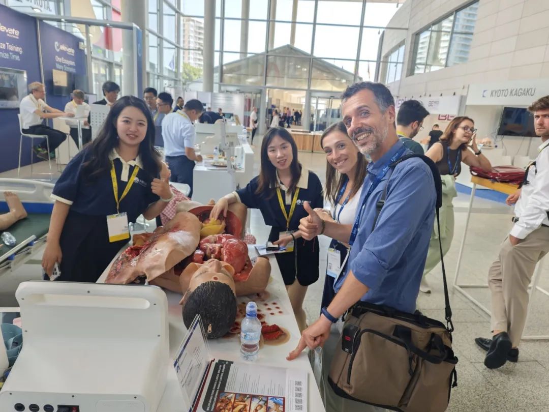 Laparotomy & Thoracotomy Damage Control Simulator became the centre of attention. When visitors touched the simulator’s thoracic cavity, the lifelike heart beating left them in awe. Featuring over 20 complete and realistic anatomical structures, it accurately replicates the position of thoracic and abdominal organs. Over 30 practical operations of damage control surgery can be performed with real surgical instruments across diverse scenarios. A French surgeon marveled, ”This is exactly like operating on a real thoracic and abdominal cavity—organs and tissues, and even simulated bleeding are stunningly authentic.” The steady stream of professionals praised its unmatched realism, calling it a revolutionary breakthrough in surgical training and teaching and a major innovation in simulated medical education.